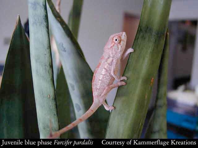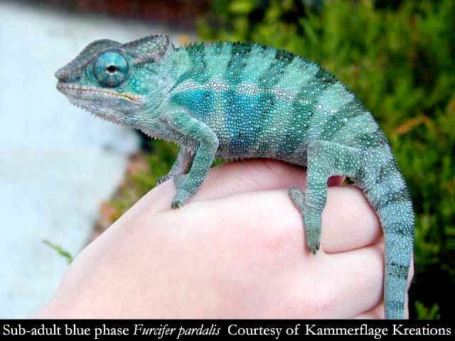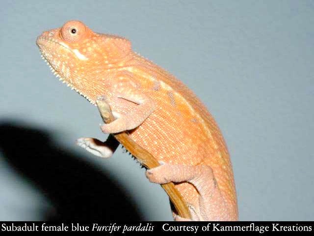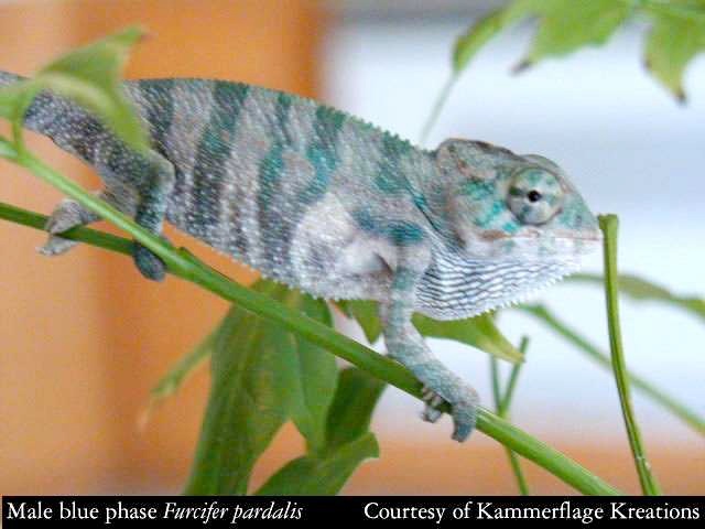 The sex of the chameleon may play an important part in your selection. Whether in ornamentation, size, color, or personality, most chameleons available to the hobbyist have noticeable differences between male and female. It then follows that you may be selective as to which sex you want. Each species has it's own sexual differences with some being more obvious than others. In the case of blue panthers you probably are looking for males for color or females for breeding. Thus a paragraph of determining sex in young panthers is warranted. The bad news is that there are only clues and few of them are definitive.