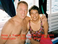 Doug Johnston, AKA “scubadug” began keeping reptiles because of his wife! A former SCUBA instructor (hence the “scubadug” moniker because 8 characters were as long as the ISP wold allow), Doug’s wife Karen wanted a lizard for Christmas. He didn’t follow through until the next summer, when she caught an alligator lizard in the front yard. The cat liberated that one and the anole came in to take it’s place but with a much better set-up. Doug proceeded to read up on the creature and found out that they were easy to breed! From there it was a glorious ride into Phelsuma and then Karen fell in love with the calyptratus. Now, with many species of chameleons and Phelsuma, anoles, Rhacodactylus, Pagona brevis, assorted insects, plus a wife and a cat, the Johnston menagerie is full!