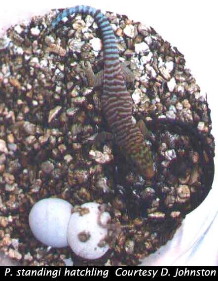 I've recently experimented with leaving P. standingi eggs in situ with the parents. They have been reported to tolerate the hatchlings, at least until they approach sexual maturity. In my experience, two of my three breeder pairs do tolerate them. The third pair has eaten every hatchling. When they do tolerate them, you will often find one of the adults basking under the heat lamp in the morning with several hatchlings piled all over them. Very cute!