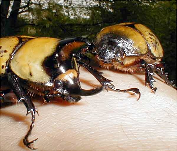 It is thrilling to hear the loud buzzing flight while at the same time watching the giant Eastern Hercules Beetle as it comes to a crash landing outside a gas station. It is even more exciting, however, to watch this amazing beetle grow and transform from a tiny egg into one of the most massive North American insects. The photos of this gorgeous beetle --included in this article-- should be more than enough proof of the rewards of keeping and rearing this magnificent creature.