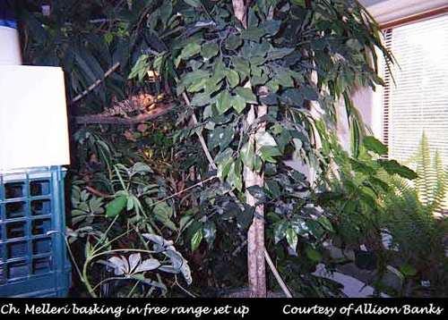 Here is a description of a free-range setup for Meller's chameleons. I hope it gives you some ideas for other species as well. Even if it doesn't thrill your chameleons it is guaranteed to worry neighbors, surprise guests, shock real estate agents, and discourage utility and appliance or delivery persons (well, you have assorted deliveries of weird insects and reptiles coming to your house regularly don't you?).