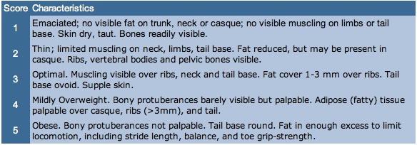 Until more data become available, simple scoring systems can be used to record body condition of your chameleons. Five-point systems work best in many situations: