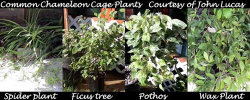 Live plants - the sooner you get them started the better off you will be! The 3 most common used live plants for chameleons are Ficus (Ficus benjamina), Umbrella (Schefflera arboricola), and Pothos (Epipremnum aureum). Some other lesser known or used plants would be the spider plant (Chlorophytum Comosum) and Wax plant (Hoya Exotica). All can be found at your local home improvement store with the exception of maybe the Wax plant. You might already have some of the above plants in your breeder's cages.
