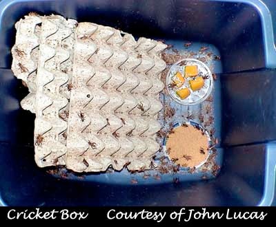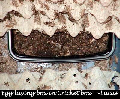 2. Cricket Box- When placing the egg laying container in the box make sure the females have access to it. This is solved by setting the last of the three pieces of egg crate they are shipped with on top of the egg laying container and the other two resting up against it.