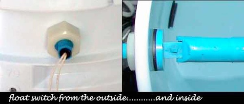 Before you connect the pump to the reservoir you will need to drill a 5/8" hole in the side wall of the reservoir. Follow the instructions that come with the float stitch to install it. This will determine where the water line from the water source will need to go. Then connect the pump to the reservoir. (See photo)