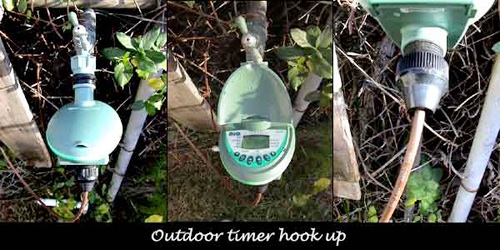 Program the water timer to your needs, you can add some Teflon tape to the fitting on the timer, this is optional. Then disconnect the adapter from the faucet, and attach the automatic water timer to the facet. Then reattach the adapter to the timer. The reason I do it this way is because the faucet is a lot stronger then the timer and it will prevent you from accidentally breaking the timer when running the tubing to the cages.