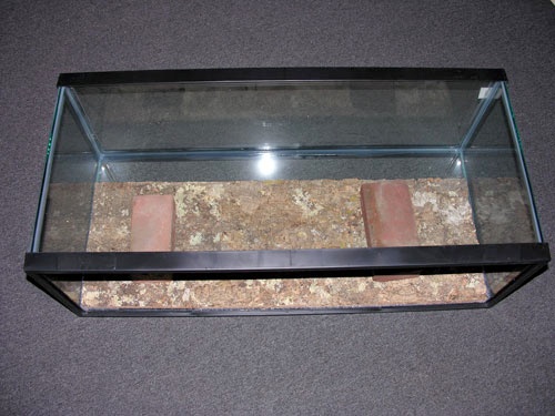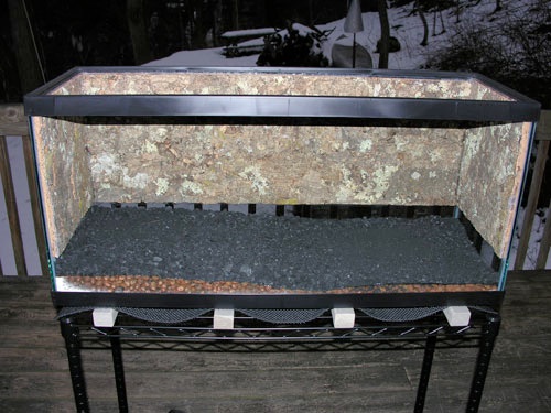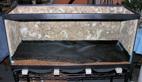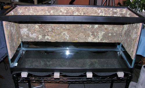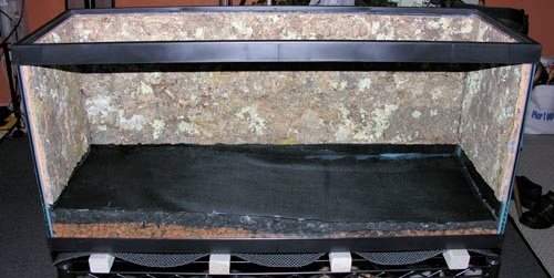 First the inside of enclosure needs to be cleaned with warm soap and water (a 10:1 water/bleach mix will work too). I don't clean the outside until the enclosure is complete. Inevitably you will get hand/finger prints, dirt, etc., on the outside during the setup process, so it's best to clean the outside walls last. If there is a serious buildup of whatever on the outside wall(s) then I suggest cleaning it up now, then a simple wipe down later. Antibacterial dishwashing soap seems to work very well - be sure to rinse the soap out completely. If you are working with a large tank such as a 50gal, then have someone assist you when moving it around if need be. This is also a good time to test the seals of the tank to make sure its waterproof.