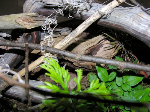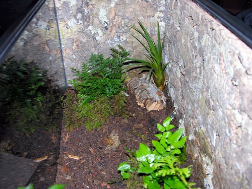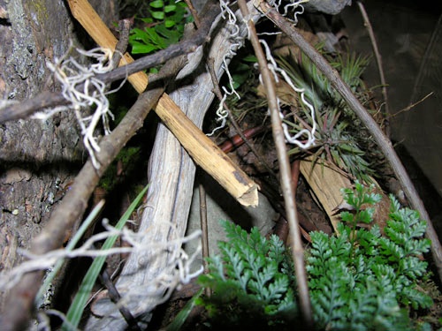 Building a stump-tailed enclosure is a fun and rewarding experience. In the end you will have an aesthetically pleasing environment for your chameleon(s) and a nice conversation piece. One aspect that I really enjoy about building these enclosures is that you have more “ingredients” to work with then you would with true chameleon enclosures. I prefer to keep my true chameleon cages simple (potted plants, plastic bottoms, and vines), whereas stump-tailed enclosures allow me to be more creative since there is a plethora of items to choose from. There are many different types of plants, mosses, barks, rocks/stones, background options, etc. that you can work with that are normally not found in true chameleon setups. This enclosure is a culmination of what I have learned since my first Rhampholeon enclosure built in October 2004. I currently have 7 enclosures ranging from 2.5 gallon to 50 gallons.