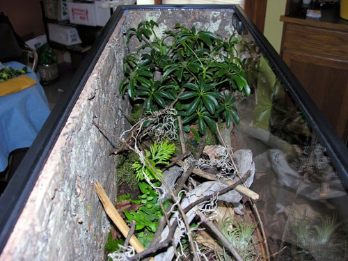 - Crunch some of the leaves you baked and sprinkle them on the top substrate - this creates a more natural effect. I have also place dead leaves and bark from trees in a blender to create natural mulch that I sprinkle on the top substrate. Remember that most species live under the forest canopy where there is little light and not a heavy growth of vegetation. There is however lots of sticks, leaves, moss, bark, etc. on the forest floor. Try and mimic this as much as possible.