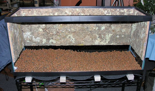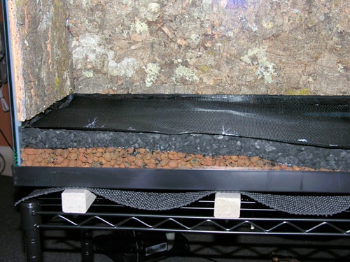 Substrate is probably the most important part of the enclosure. Having proper drainage layers defines whether or not the enclosure will be successful or not. The hydroton is by far the best material to use since it's lighter and cheaper than gravel and has a neutral pH. I placed about and inch to an inch and half of hydroton on one side of the tank and around three inches on the other side. This will give the landscape a sloping effect.