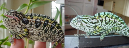 Excited but not gravid Female (left) and Male (Right) Furcifer lateralis lateralis.