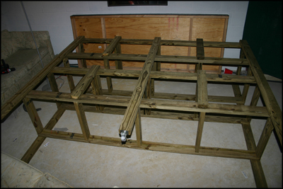 Once the outer perimeter of the bottom frame piece is built, three additional 21” sections are secured in the center of the frame spaced equally apart. Remember if you are building the double leveled enclosure, you'll need to build two bottom frame pieces, one for each enclosure level.