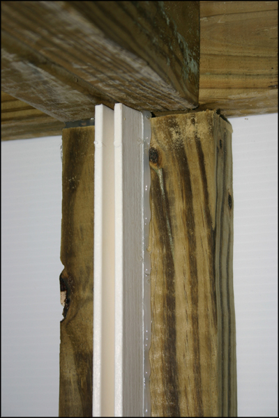 You can them attach a piece of 4'x28” corrugated plastic to each end of the enclosure using 1 5/8” deck screws. This will make give solid sides to the sides of the enclosures.
