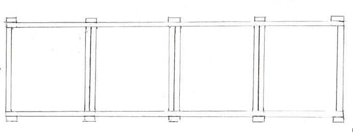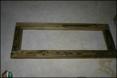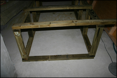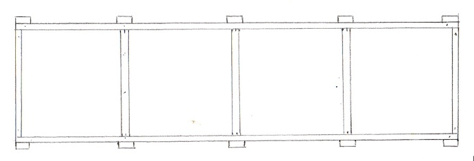 Going back to the double leveled enclosure, once you've made the two top and two bottom frame pieces and cut four 2' and three 75” vertical support boards for each side, you can attached them to one side according to the plans. Once this in complete, attach two of the 75” legs to the other side for support during flipping.