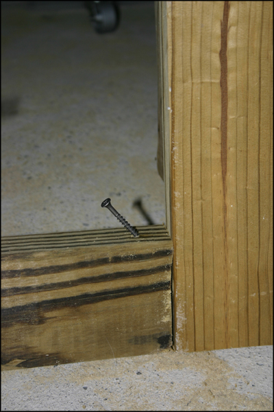 L-brackets and a diagonally inserted screw in each corner are used to build each door frame.