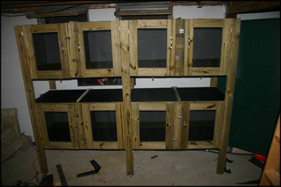 One thing that has always annoyed me about commercially produced enclosures is their lack of versatility. They don't allow you any flexibility in their size or use and in many cases this limits your ability to work with certain species because of housing constraints or limits how effective your breeding efforts can be. After throwing around complaints about our own setups and talking about things we wish we could do, Jason and I came up with an idea on a cage design that we hoped would fix some of these problems.