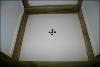 A 2'x4' piece of 1/8” expanded PVC board attached to the bottom of the enclosure.