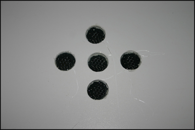 Hot glue is used to attach screen to the large end of a funnel for each individual cage.