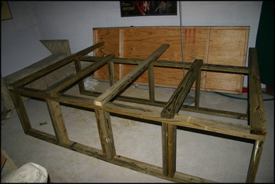 Top and bottom frame pieces connected on one side with the two 4' vertical frame supports and the three 6' vertical frame support legs.