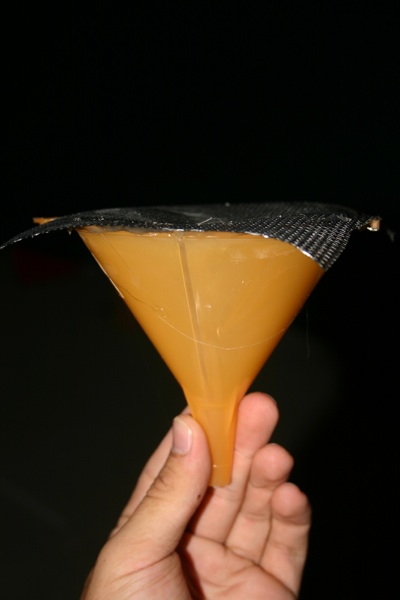 At this point, you should attach a piece of screen to the top of a small funnel for each cage using hot glue.