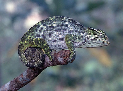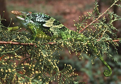 Often called the Giant or Monkey Tailed Fischer’s Chameleon, this male is actually Kinyongia matschiei. Photo by Jean Mariaux