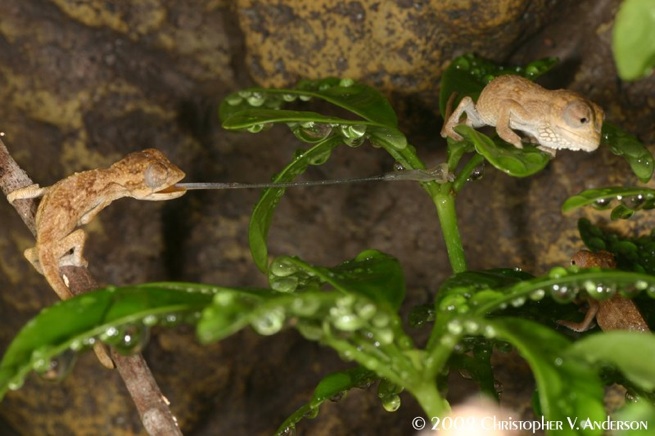 Neonate Bradypodion transvaalense feeding on fruitflies. Photo by Christopher Anderson.