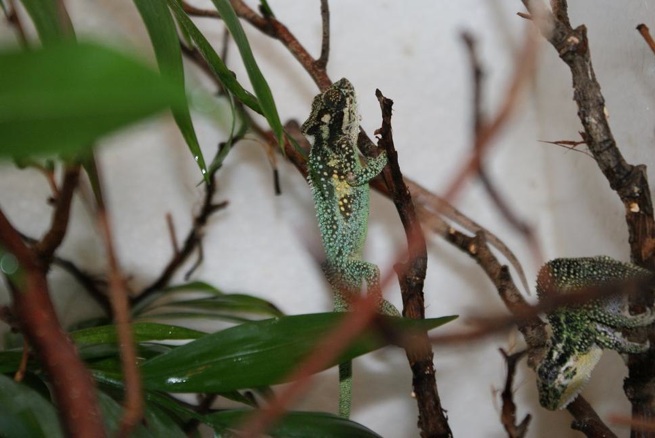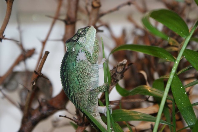 Deckers notes that in The Netherlands, he keeps a portion of his chameleons outdoors from May to September/October. He only keeps a portion of his group outside for two reasons. First, there is always a risk of theft when keeping animals outside. More importantly, however, about 7 years ago, he experienced a loss of a very large breeding group of montane species when he moved his animals back inside from being outside. He’s never been sure about the cause but he believes that it had to do with differences caused by the temperatures of the air inside and outside. Indoors, he has been able to create the same temperature conditions as outside better in recently years and has been starting to put more of his animals outside each year. He still, however, never puts his complete group of any given species outside.