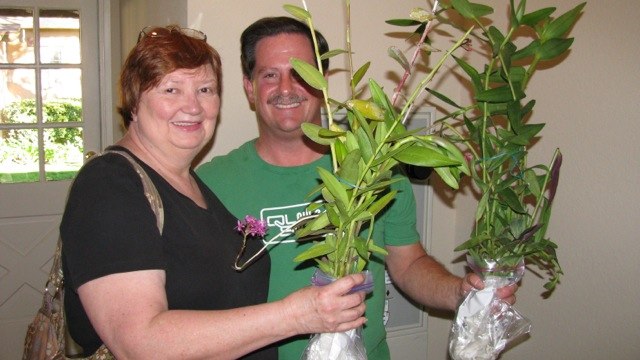 Laurie and Lance talk orchids. Laurie, the author, joined in a meeting during a visit to Southern California